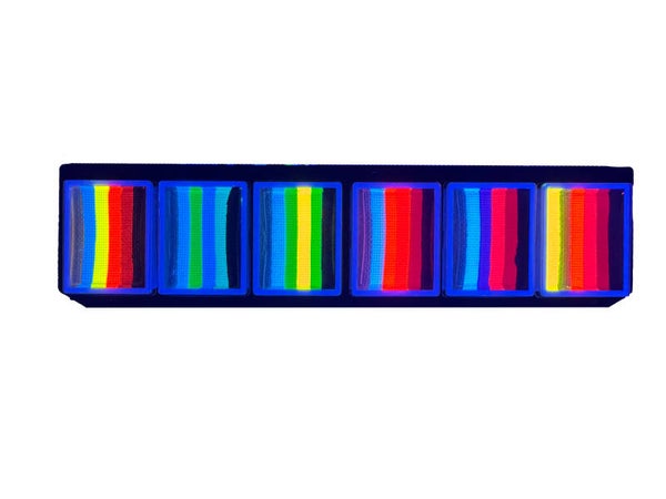 Dit palet bevat de 6 prachtige UV splitcakes die oplichten onder blacklight lampen: